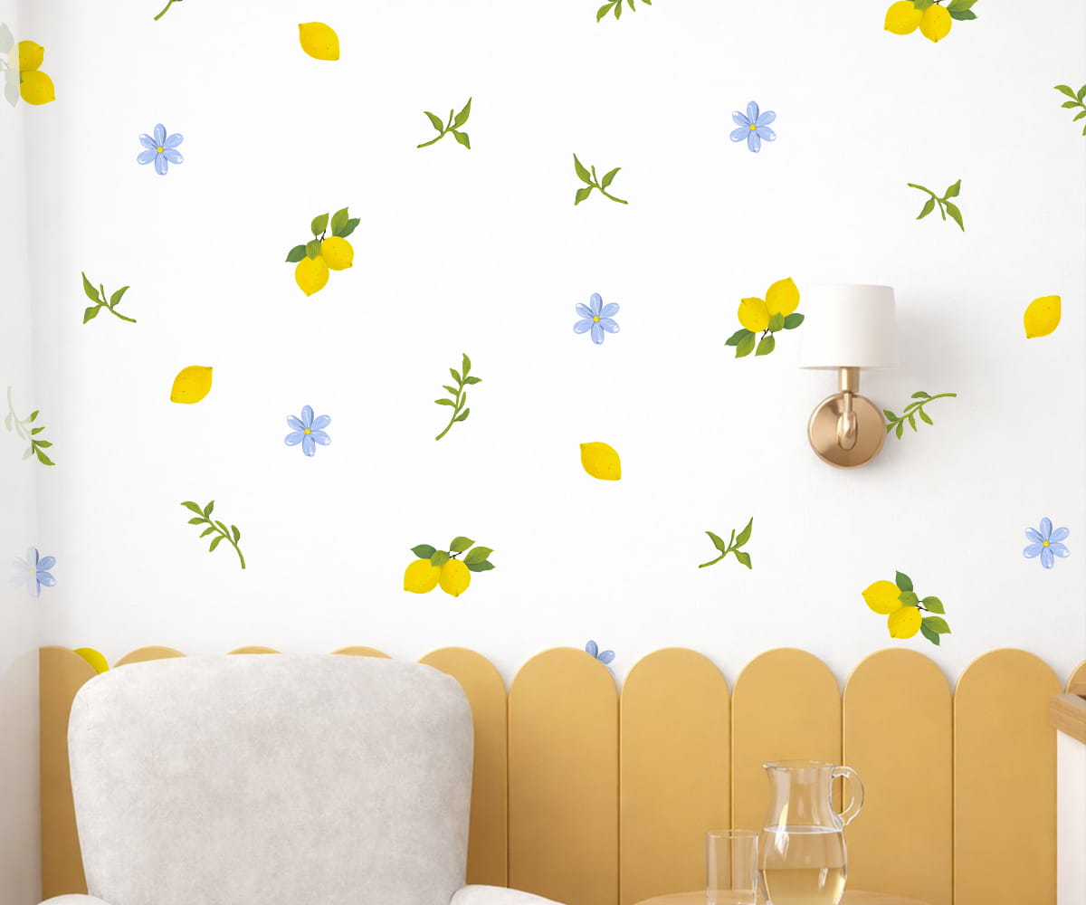 These Limoncello wall decals bring a fresh, Italian-inspired charm to your space with hand-illustrated lemons, leaves, and delicate florals. Style them spaced out for a light, playful look, or place them closer together to create a bold Italian tile–style pattern reminiscent of coastal homes. Easy to apply, removable, and gentle on walls, these lemon wall decals are perfect for kitchens, dining areas, or any room needing a bright Mediterranean touch.