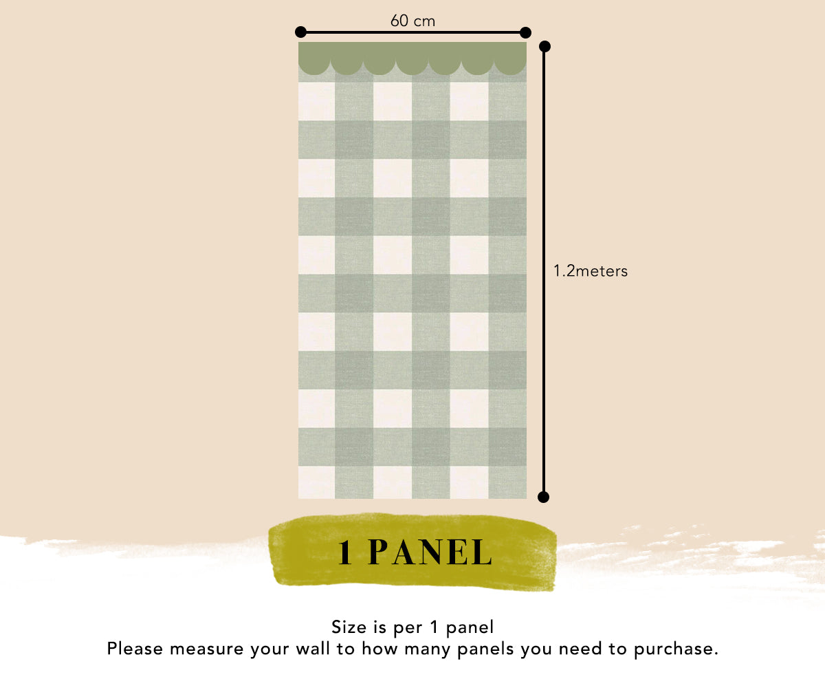 Refresh your space with the soft, timeless charm of this Olive Plaid peel-and-stick wallpaper. Featuring a gentle green check pattern paired with a sweet scalloped border, it brings a cozy, cottage-inspired feel to nurseries, playrooms, or reading nooks. Designed with a subtle, fabric-like texture that adds warmth without overwhelming the room, this wallpaper instantly elevates your walls while keeping the look calm and inviting. Easy to apply, removable, and renter-friendly, it’s the perfect way to transform your space into a beautifully styled corner with minimal effort and maximum comfort.