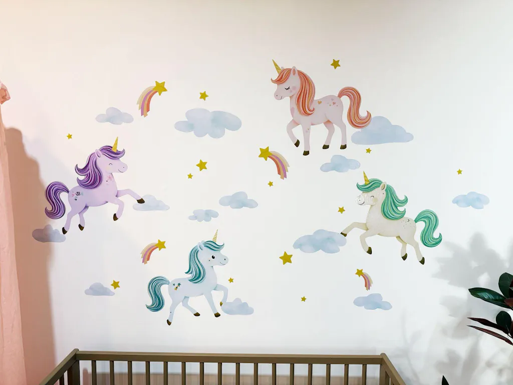 Bring a touch of magic and wonder to your child’s room with this enchanting Unicorns wall decal set! Featuring colorful unicorns prancing among clouds, stars, and rainbows, it creates a dreamy, whimsical atmosphere. Perfect for nurseries, bedrooms, or playrooms, this set turns any wall into a magical fairy-tale scene that inspires imagination and joy.